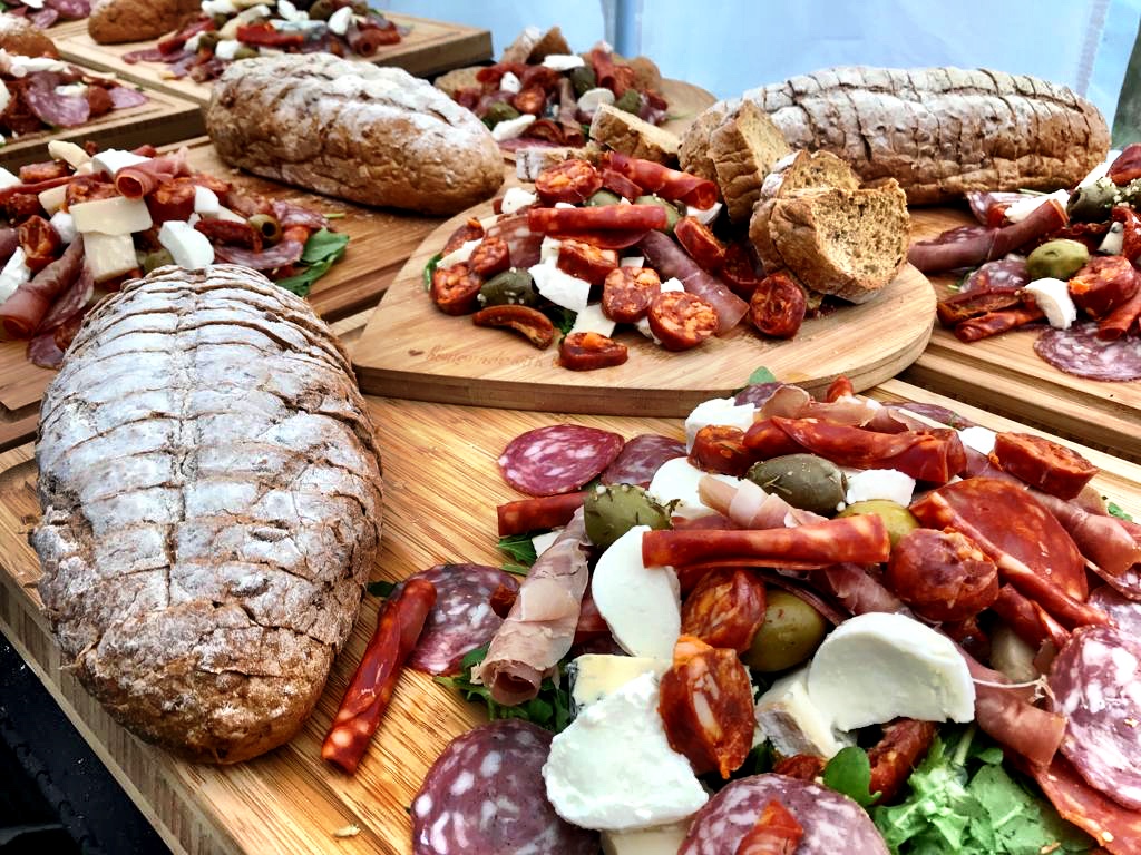 David had gone all out with Hog Roast Shorton’s Alfresco menu. As guests arrived several antipasti grazing boards were placed near the barber guests to help themselves. There was a variety of fine meats and cheeses to enjoy alongside bite size nibbles such as stuffed olives, peppers and fig leaves. Artisan breads, breadsticks and cheese twists accompanied the boards. A light snack to enjoy before a mighty main.